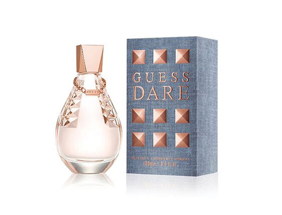 Parfumul Guess Dare este un parfum pentru femei incitant și provocator. Dare simbolizează o femeie pasională, seducătoare și sexy. O femeie care are propriul stil, iubește aventura și îi place să atragă atenția. Esența plăcută combină note florale și lemnoase. Miroase a piersici delicate și flori de lămâie. In inima sunt combinate flori fragede, care dau parfumului o nota romantica. Lemnul cald, nuca de cocos dulce si moscul inchid aceasta minunata compozitie. Dare te va face să te simți seducătoare și foarte feminină. Atrageți atenția tuturor bărbaților.