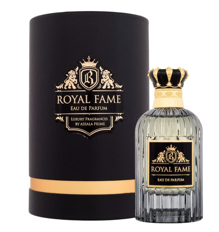 Royal Fame se deschide cu o explozie revigorantă de note de vârf, unde aroma vie și picantă a grepfrutului se combină cu căldura condimentată a cardamomului și nucșoarei. Aceste note proaspete creează un început atrăgător, care trece lin în inima parfumului. În centrul său, aroma calmantă de lavandă se îmbină cu bogăția cremoasă a lemnului de santal și profunzimea rășinoasă a tămâii, oferind un amestec armonios care liniștește și fascinează.