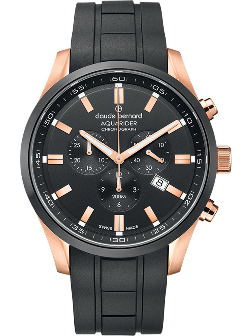 Claude Bernard 10222-37RNCA-NIR Mens Watch Aquarider Chronograph 44mm 20ATM