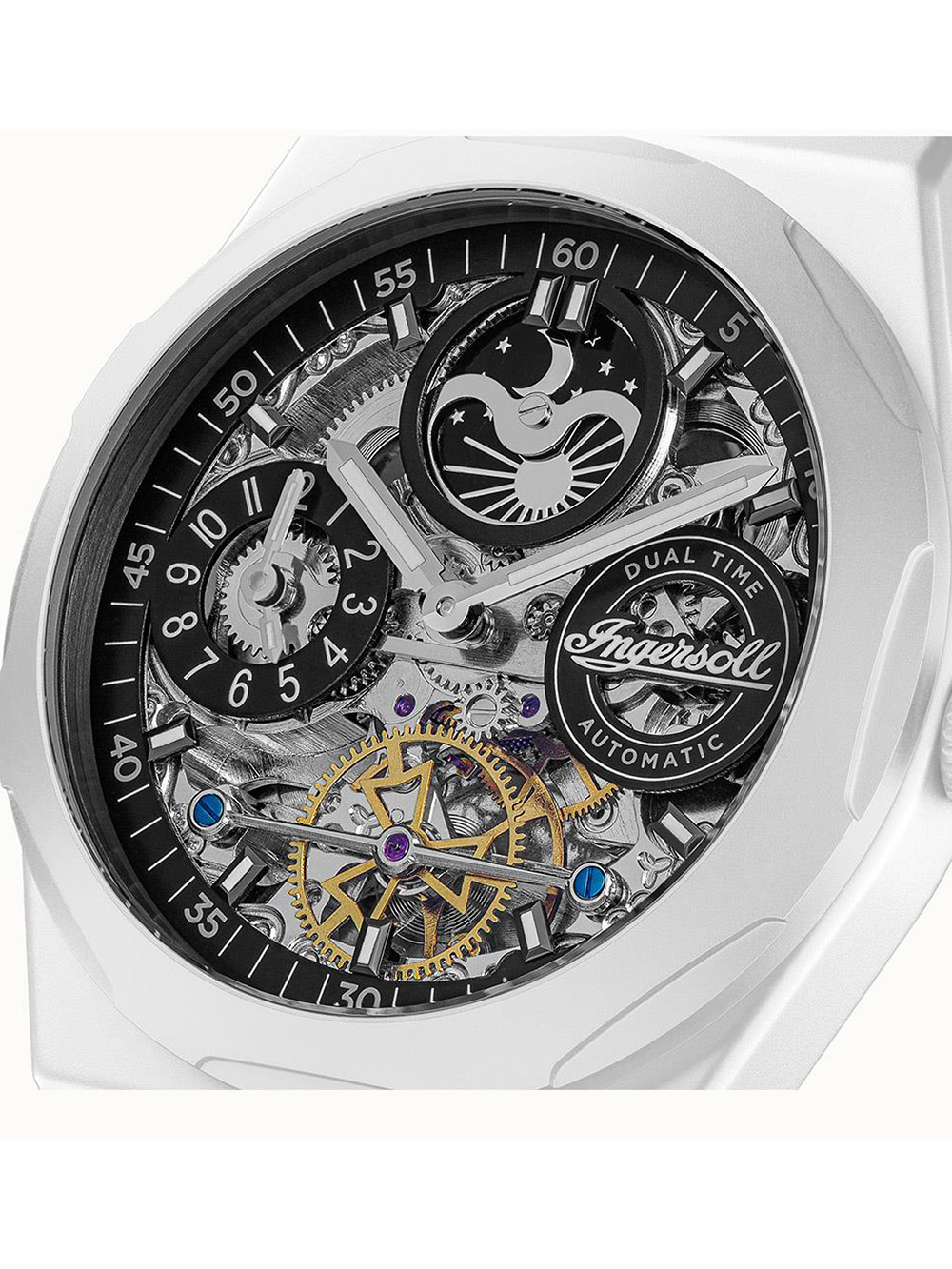 Ingersoll I15101 The Broadway Ceramic Dual Time Automatic Mens Watch 43mm 5ATM