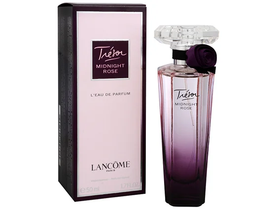 Lancome Tresor Midnight Rose este un parfum lansat in 2011. Este un parfum floral catifelat cu accente de lemn. Tresor Midnight Rose este un parfum potrivit în special pentru zilele mai reci, când poate mirosi perfect. Esența cheie a parfumului luxos Lancome Tresor Midnight Rose este un trandafir dulce, care conferă parfumului o aromă florală bogată. Cu toate acestea, aceasta este îmbogățită de prospețimea zmeurii, care însoțește parfumul trandafirului. Aroma florilor și fructelor este înmuiată de vanilie, creând o aromă delicios de cremoasă, delicată. Notele lemnoase de cedru și accente picante de piper adaugă o notă de orientalitate parfumului. Tresor Midnight Rose este un parfum senzual, tentant și de dorit. Niciun bărbat nu-i poate rezista. Este catifelat, moale, atrăgător dulce și, în același timp, misterios de exotic. Tresor Midnight Rose este un accesoriu ideal pentru o femeie care vrea să fie văzută în jur și în centrul atenției. Parfumul Tresor Midnight Rose este purtat de femeile încrezătoare în sine, misterioase și dezirabile. Parfumurile Lancome sunt înconjurate de o aură de unicitate, la fel și Tresor Midnight Rose. Este un parfum atât de perfect pentru orice ocazie festivă sau seară specială.Parfumul Tresor Midnight Rose este vândut într-o sticlă mov superbă, luxoasă, care este decorată cu un trandafir violet închis. Ambalajul subliniază astfel chiar numele parfumului.