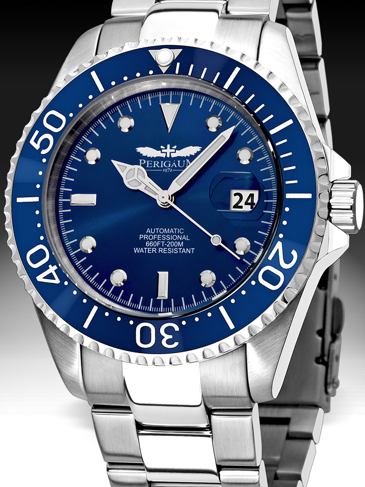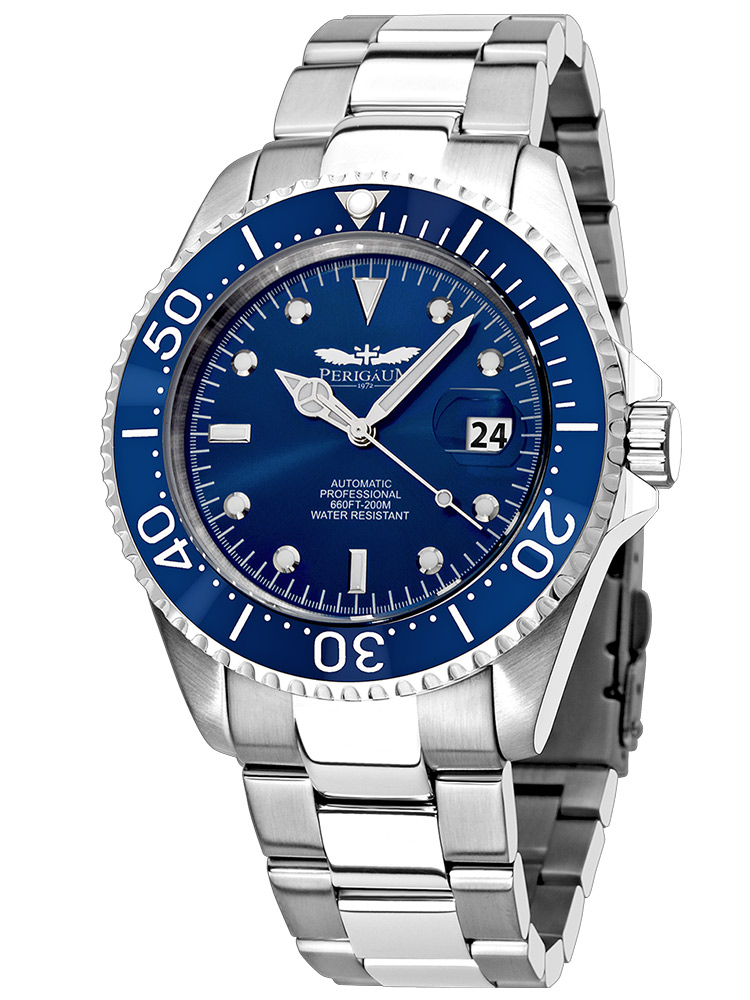 Perigaum Pro-Diver P-1308-SS-BL Automatic Silver Blue 43mm 200M
