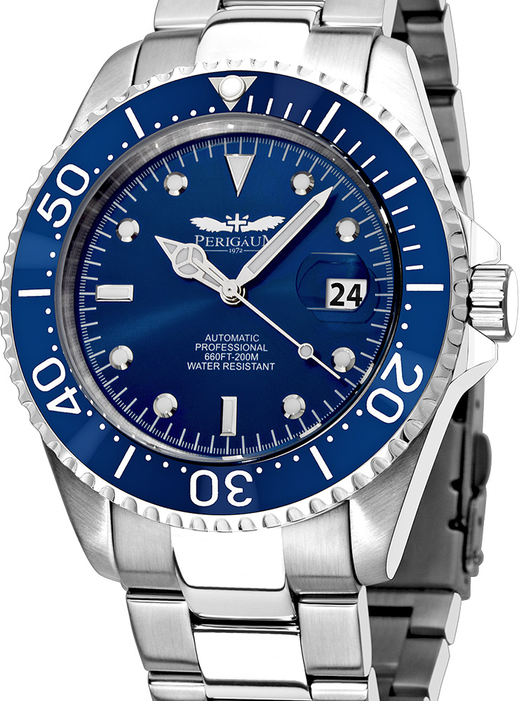 Ceasul pentru bărbați Perigaum Pro-Diver P-1308-SS-BL Automatic Silver Blue 43mm 200M va adăuga eleganță și vă va susține stilul dumneavoastră. Cu o manoperă de calitate din atelierul Perigaum, nu trebuie să vă faceți griji că alegeți greșit.