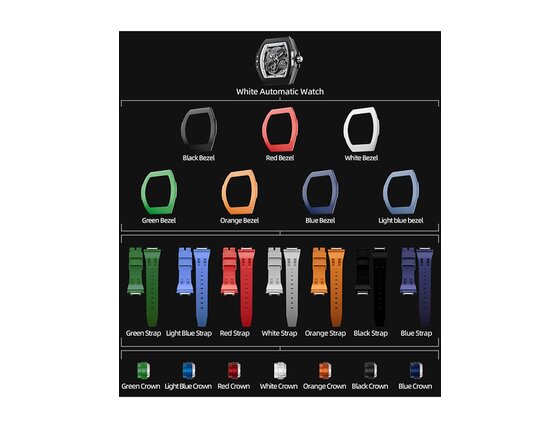 - Culoare curea: Albastru, Verde, Portocaliu, Roșu, Negru, Alb